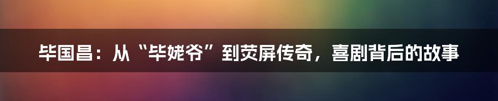 毕国昌:从“毕姥爷”到荧屏传奇,喜剧背后的故事
