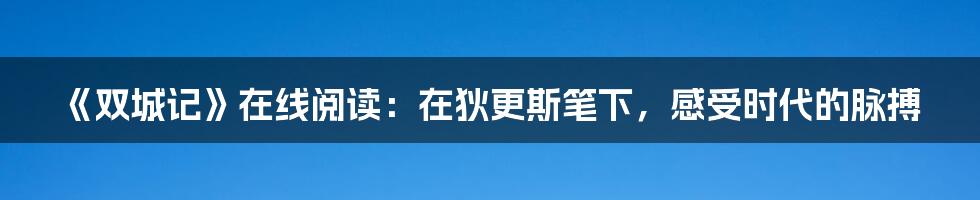 《双城记》在线阅读:在狄更斯笔下,感受时代的脉搏