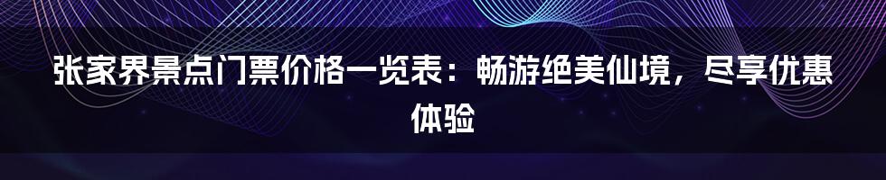 张家界景点门票价格一览表:畅游绝美仙境,尽享优惠体验