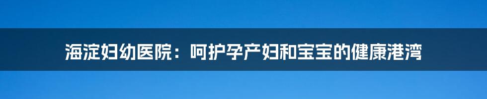 海淀妇幼医院:呵护孕产妇和宝宝的健康港湾